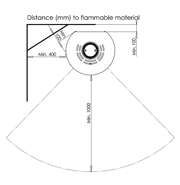 Distancia de seguridad a materiales inflamables en caso de instalarse en un rincón
