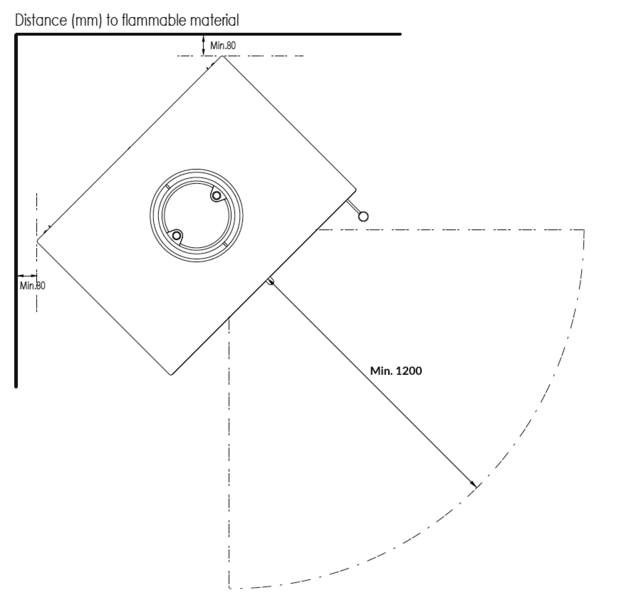 Distancia de seguridad a materiales inflamables en caso de instalarse en un rincón
